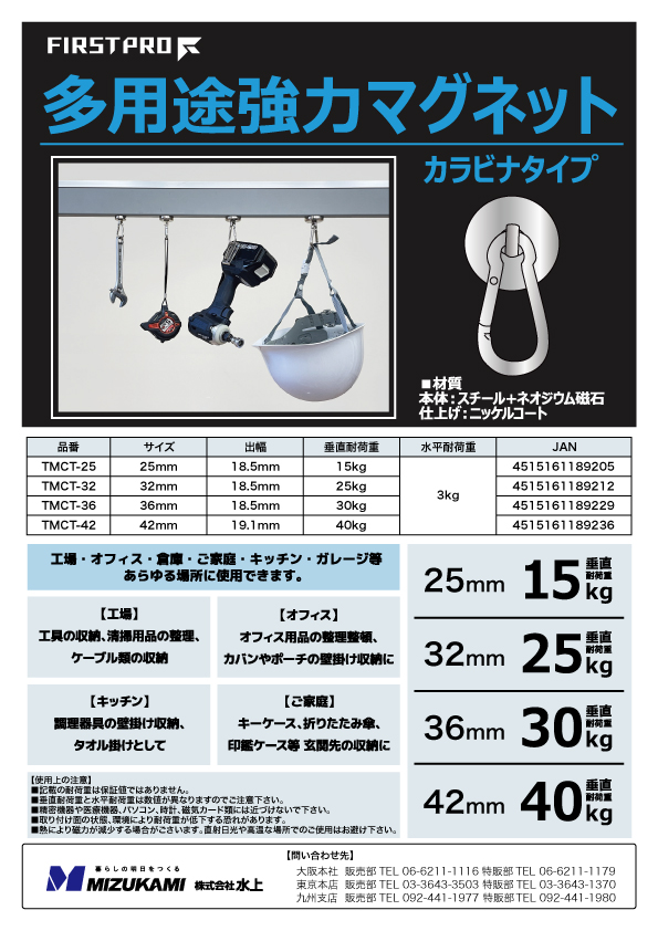 商品名:FIRSTPRO 多用途強力マグネット・カラビナタイプ