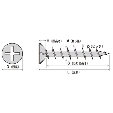 フレキ 一覧 ※単位(m/m) 品番 サイズ 仕上げ L D H d p S 小箱 ケース 参考価格 商品コード W25F 4.2×25 三価ユニクロ 25 7 2.7 4.2 2.8 全ねじ 1,000本 10,000本 3.40 01000011 W28F 4.2×28 28 3.70 01000012 W32F 4.2×32 32 4.25 01000013 W41F 4.2×41 41 500本 5,000本 5.35 01000014 W51F 4.2×51 51 45 6.70 01000015 W65F 4.8×65 65 7.5 2.6 4.8 3.2 300本 3,000本 10.45 01000017 W75F 4.8×75 75 200本 2,000本 13.00 01000018 ※フレキコースはケース単位での出荷になります。